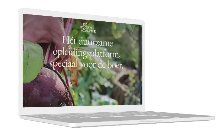 De Boeren Academie is een opleidingsplatform voor boeren, ontwikkeld met veldexperts en gericht op duurzame verdienmodellen, agrarische innovatie en vaardigheden zoals marketing & communicatie.