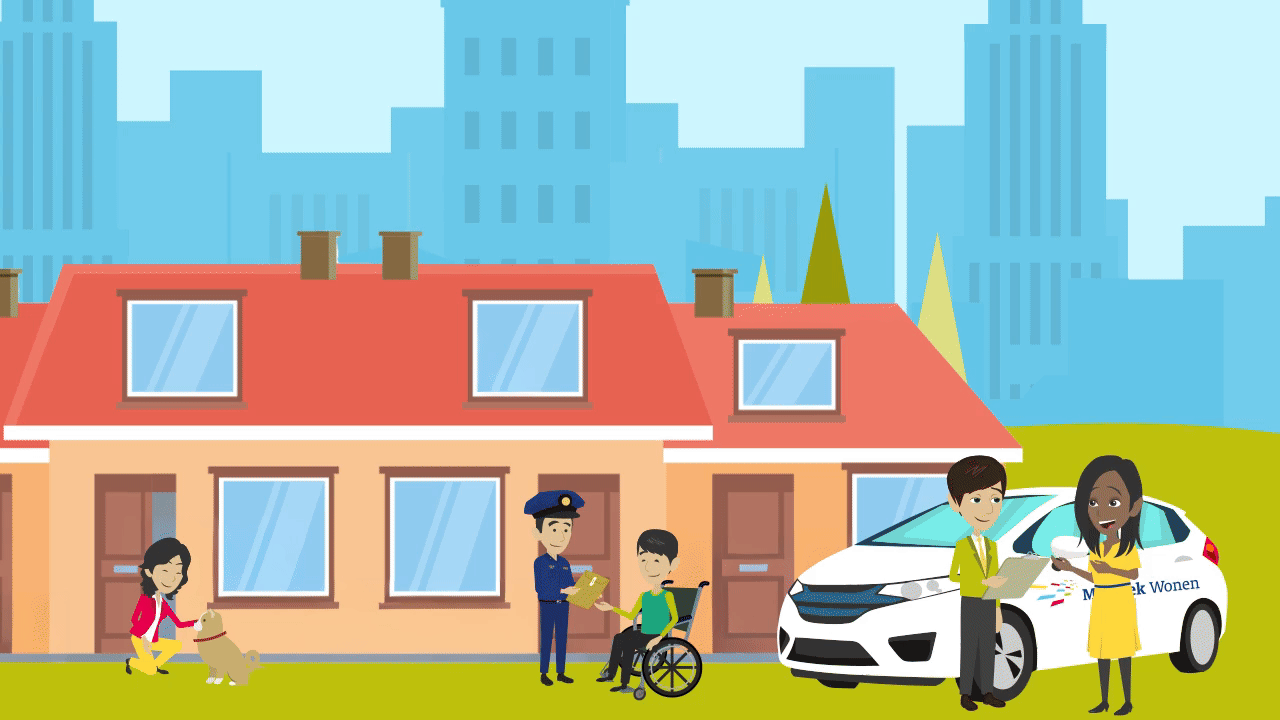 De animatie laat de belangrijkste uitgangspunten van de I&A visie en strategie zien, in een tempo en vorm die prettig zijn om te volgen. De stijl sluit volledig aan bij de visuele identiteit van Mozaïek Wonen, met gebruik van hun eigen beelden en herkenbare elementen.