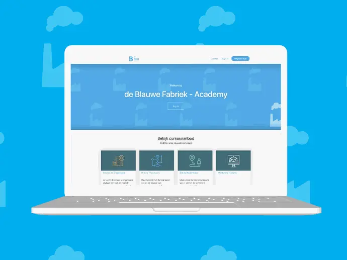 Een schaalbare e-learningoplossing waarmee De Blauwe Fabriek haar verandermanagementtrainingen nu online kan aanbieden aan een groeiend aantal deelnemers.