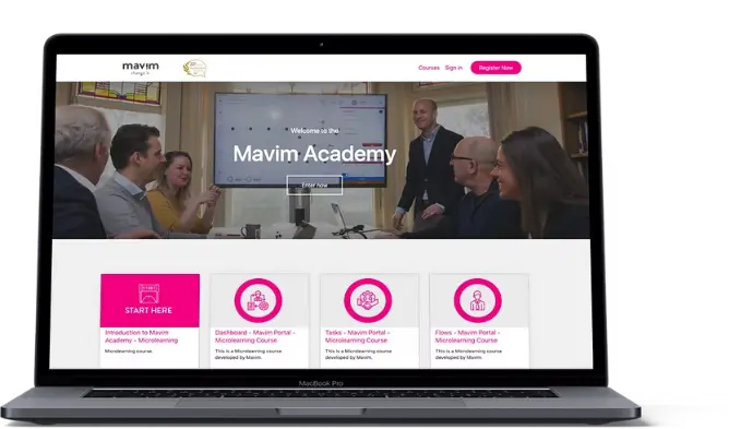 Altijd en overal toegang tot trainingen. Zo kunnen Mavim-gebruikers leren op hun eigen tempo en op het moment dat het hen uitkomt.Flexibel opschalen